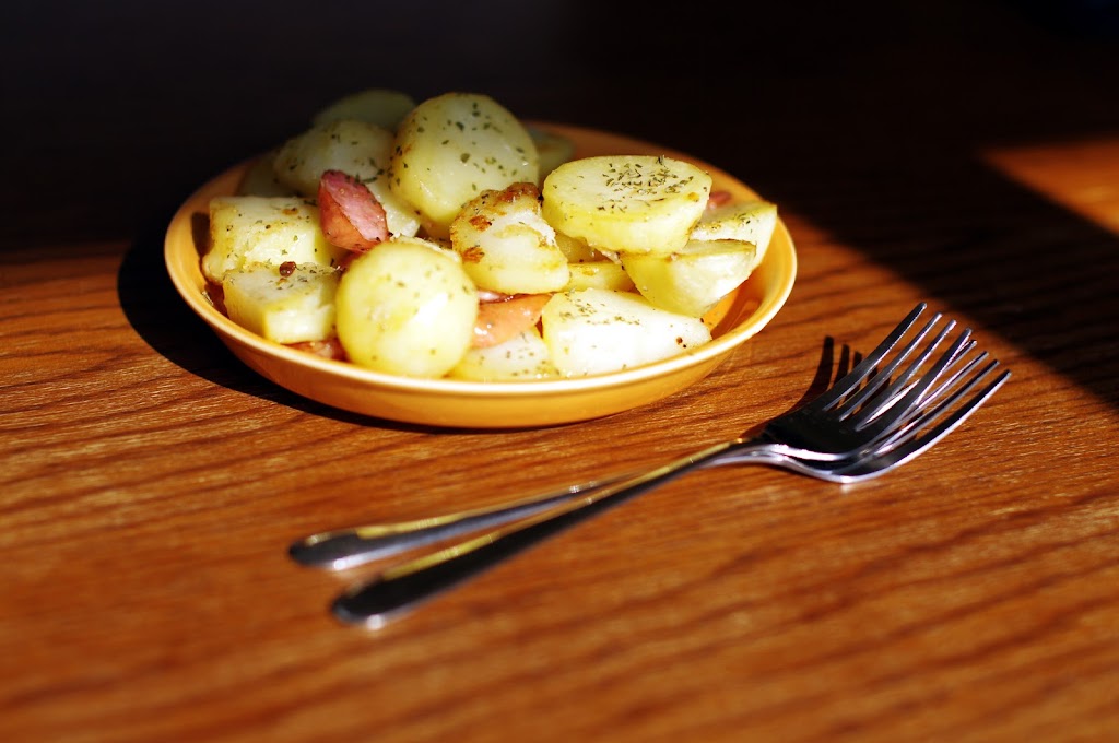 窓側の席でスパゲッティの完成を待つ僕とポテト
